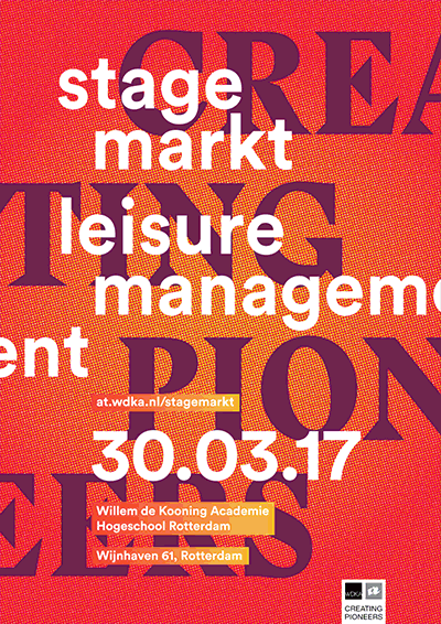 The Willem the Kooning Academy in Rotterdam commissioned us to make a poster design for a yearly internship market evening. Together with Thomas Visser, we helped them out with a crisp visual based on a typographical composition.